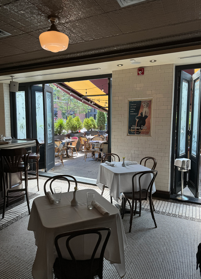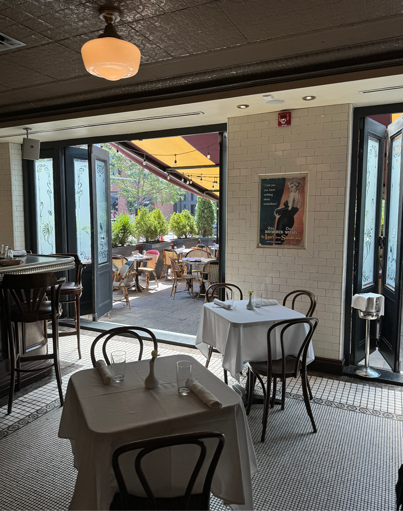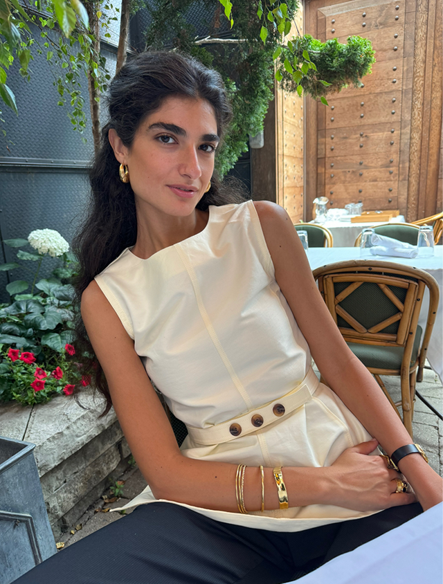 Romy on the terrace of her favourite restaurant, Le Sélect Bistro. She is wearing the CHANCE top.