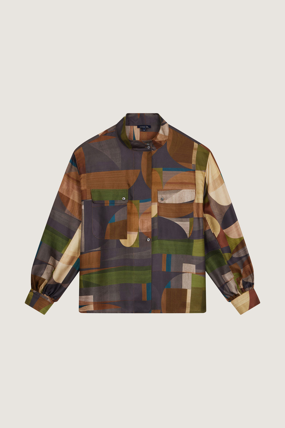 Silk twill printed shirt green/brown