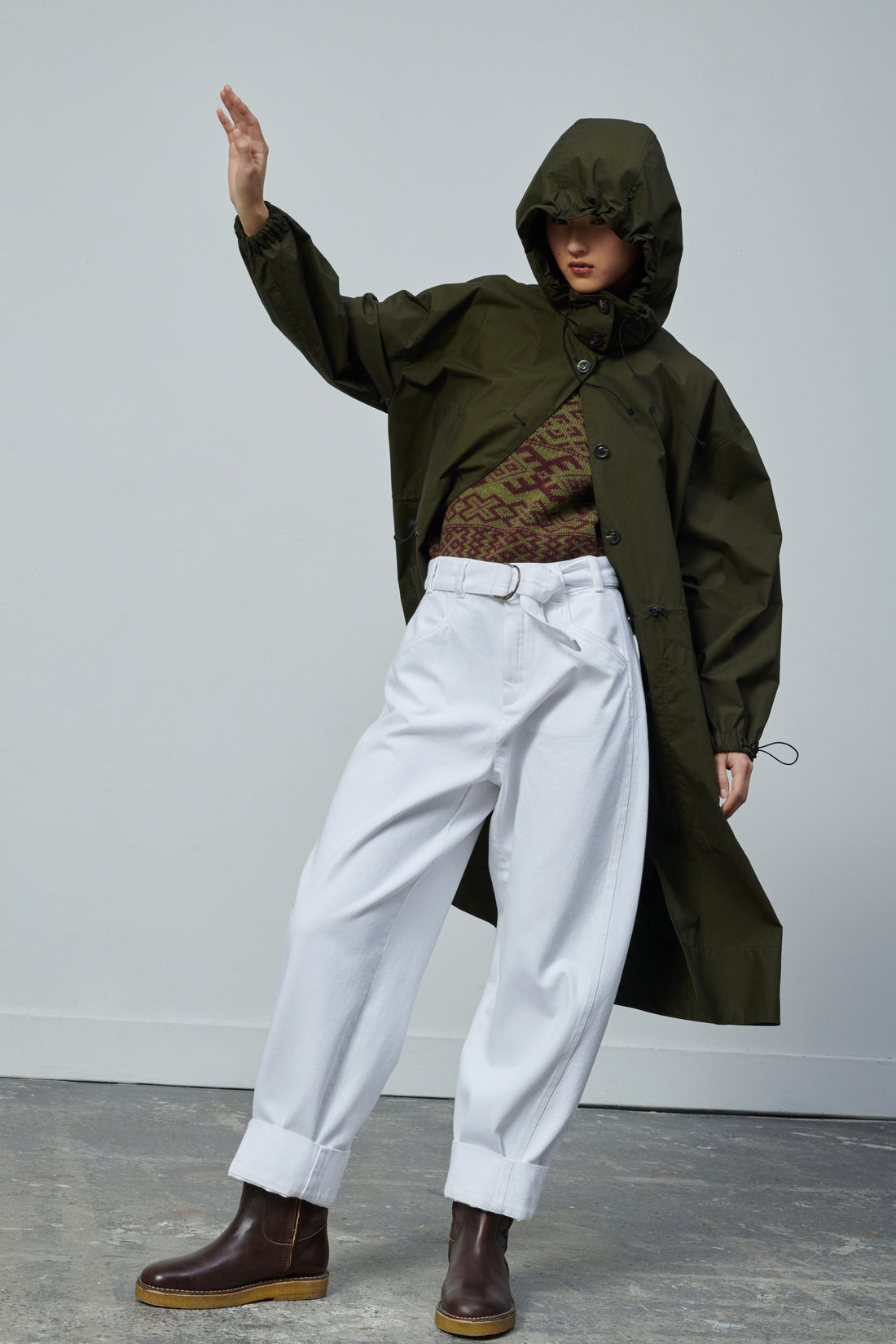 White denim high-waisted trousers