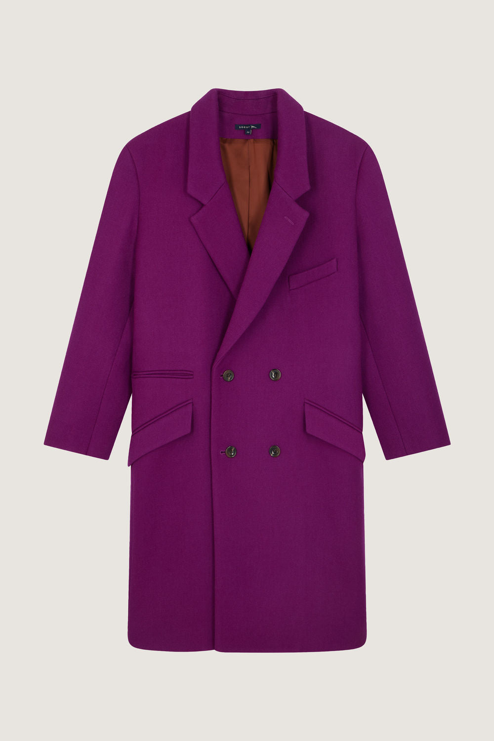 Coat in virgin wool twill fushia