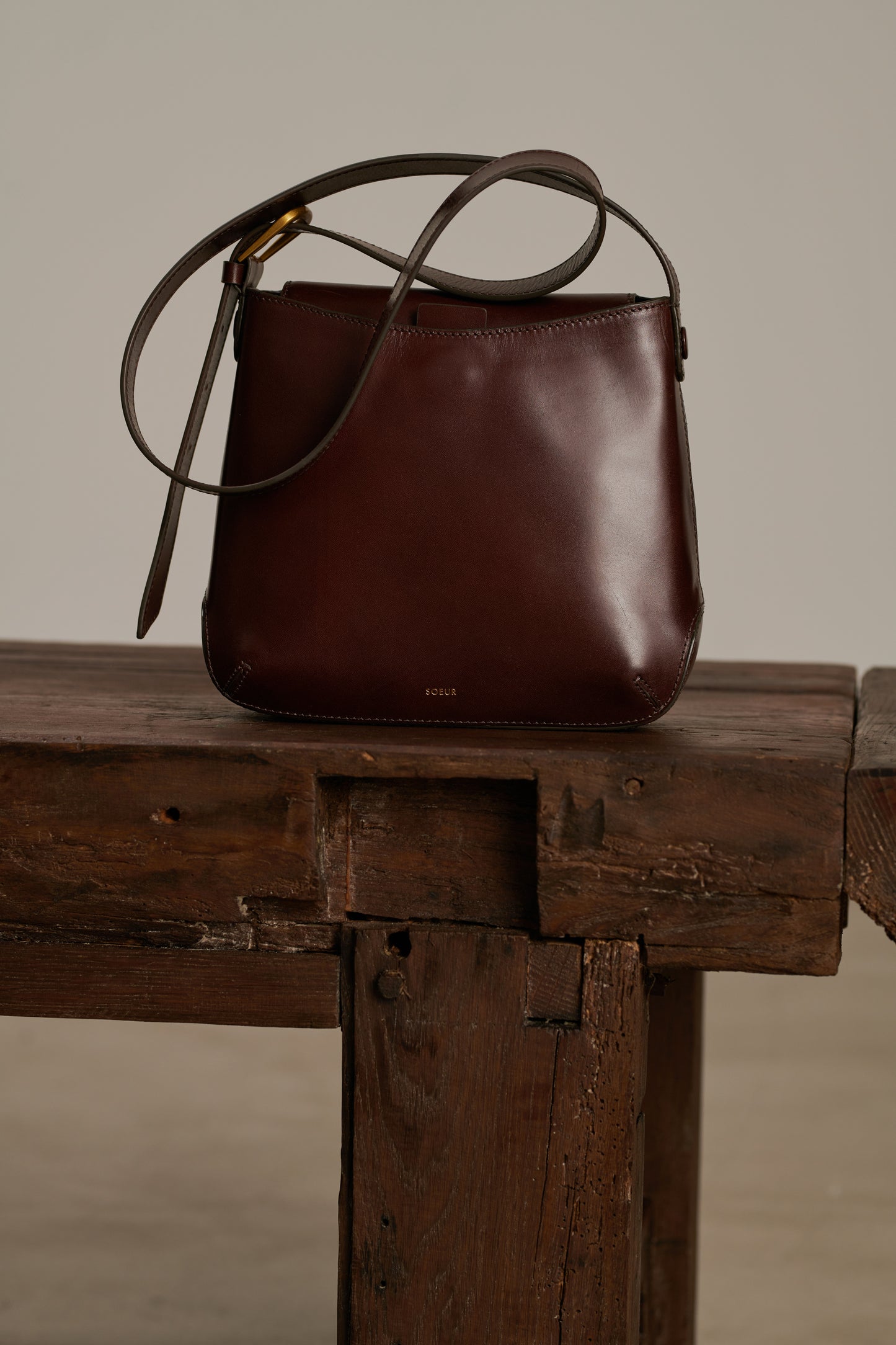 - Glossy Brown Leather Shoulder Bag