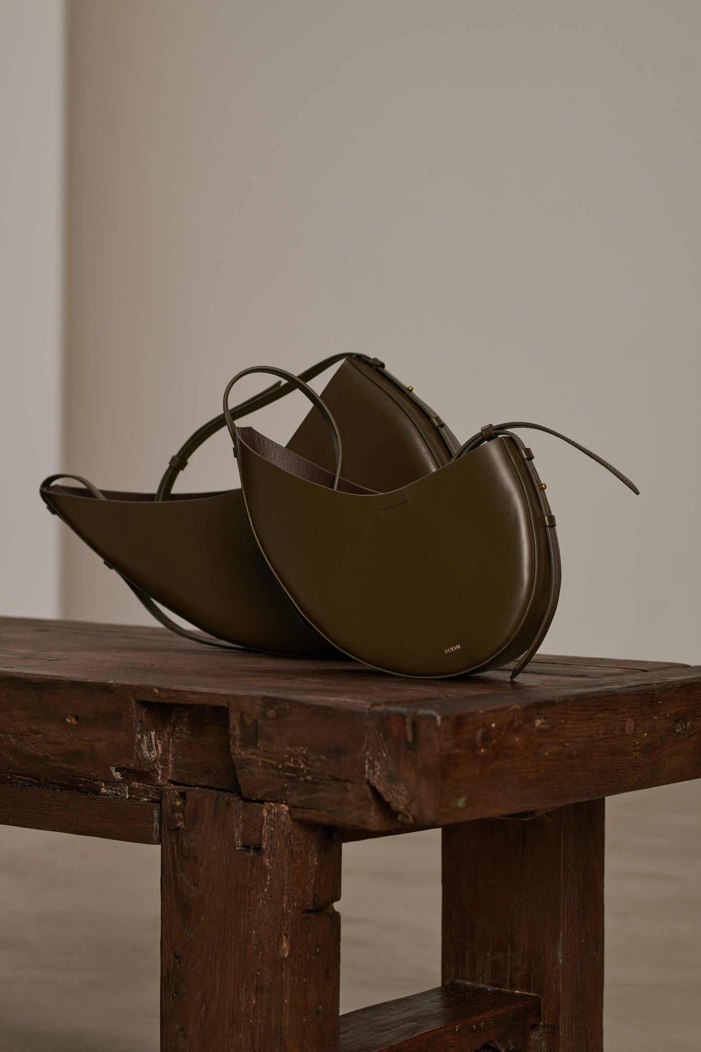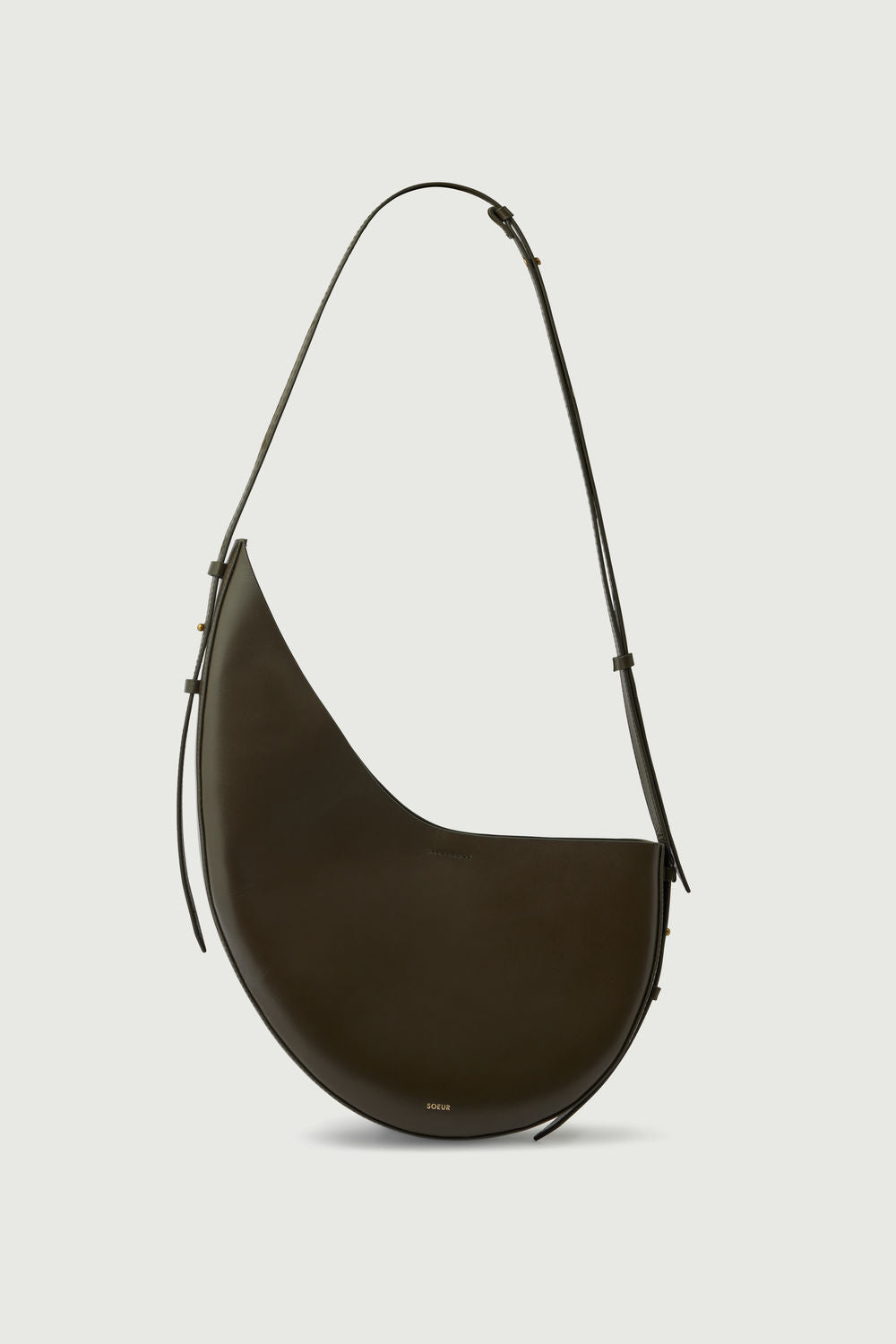 - Removable lambskin leather pouch inside the bag, secured with a snap button